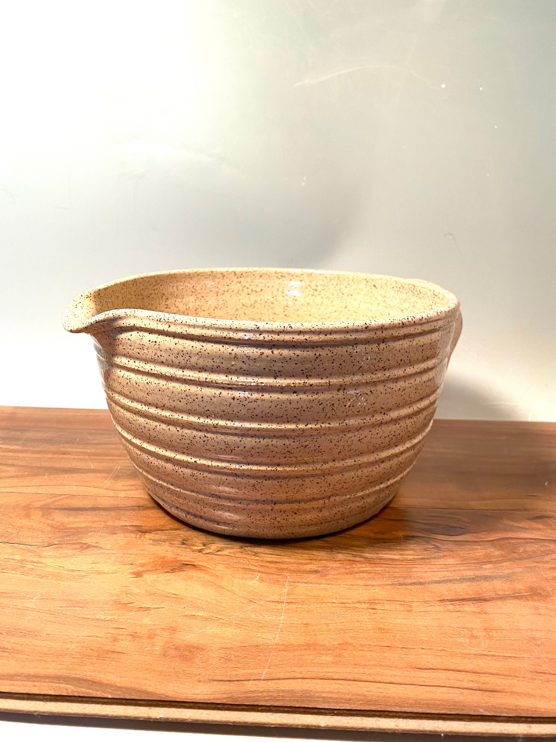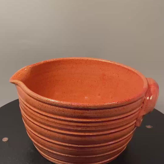Handmade stoneware mixing bowl with wide spout and lug handle. This Item is made to order. Please allow up to 4 weeks to ship.