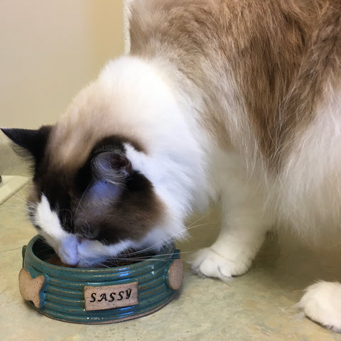 Customize your own special cat or dog bowl! Please select your color and either dog bone, paw print or fish style when completing your transaction.